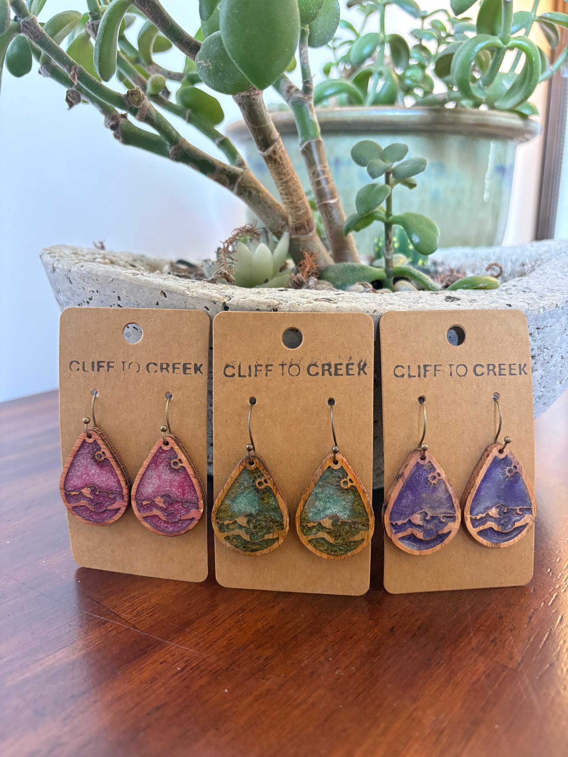 Mt. Alice stands proudly along Resurrection Bay in Seward, Alaska—an beautiful peak rising straight from the ocean to 5,318 feet. It serves as a daily reminder of strength, resilience, and the untamed beauty of nature. I have so much love for every moment spent on this mountain—from playing violin on its ridge, to camping in the fog, and to venturing along its remote backside. These earrings, crafted from maple wood and epoxy resin, are a tribute to the mountain that has inspired so much awe and connection to the outdoors.